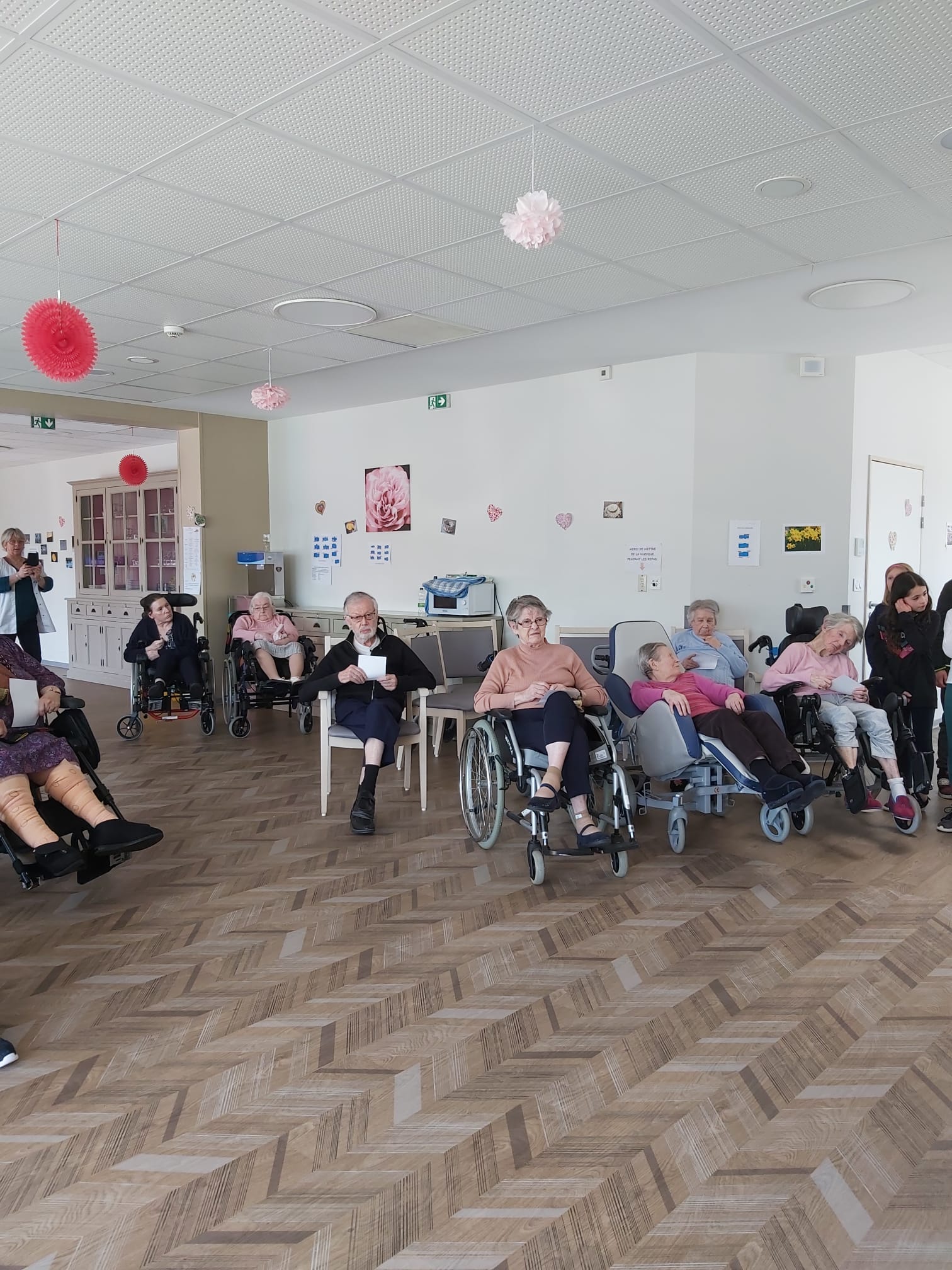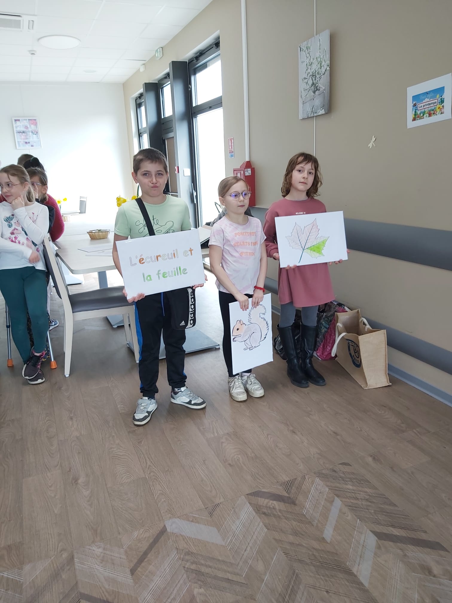 La classe est allée rendre visite aux résidents de l'établissement Périer afin de les divertir. Dans la salle à manger, les élèves ont interprété deux poèmes: "L'écureuil et la feuille" puis "Sept couleurs magiques". Enfin le spectacle s'est terminé sur la chanson "Champs Elysées" de Joe Dassin, reprise en chœur par les résidents! Nos élèves avait le trac mais tout s'est bien passé. Comme tout spectacle qui plait, les élèves ont eu l'occasion de chanter de nouveau avec un groupe de résidents qui n'avait pas pu assister au spectacle.