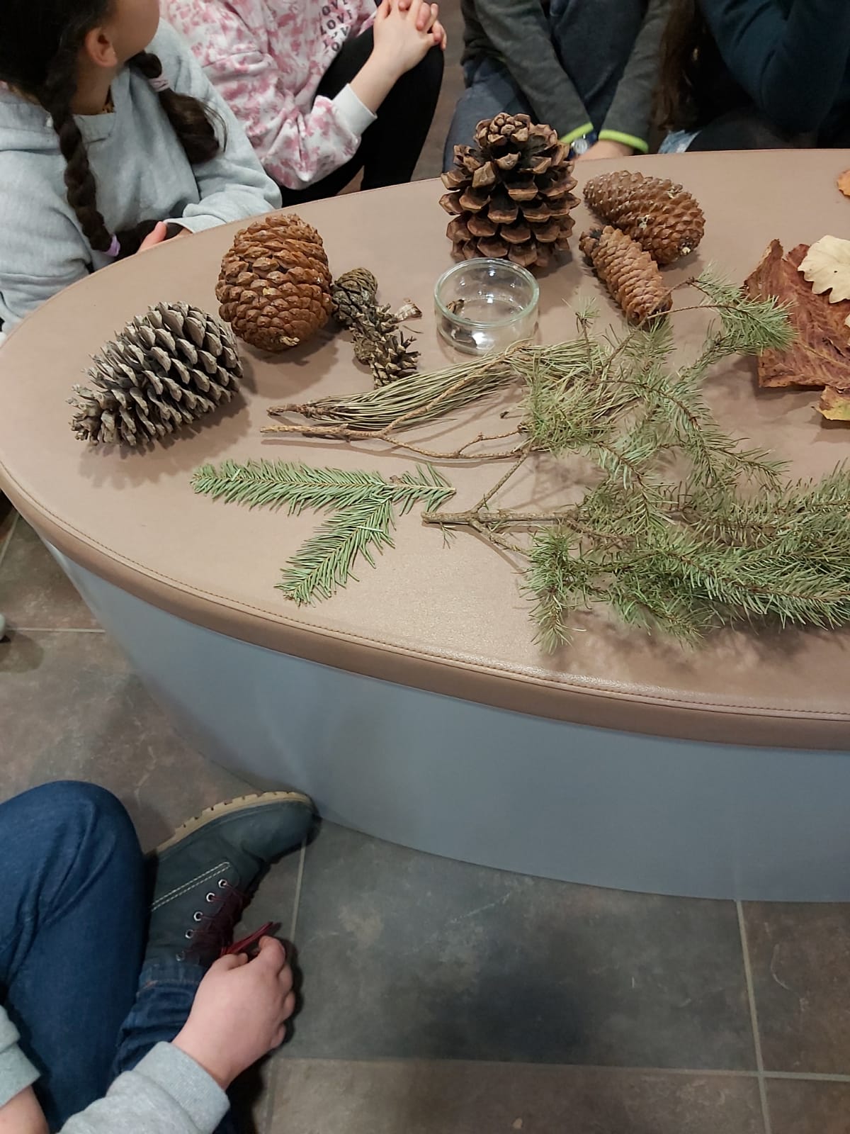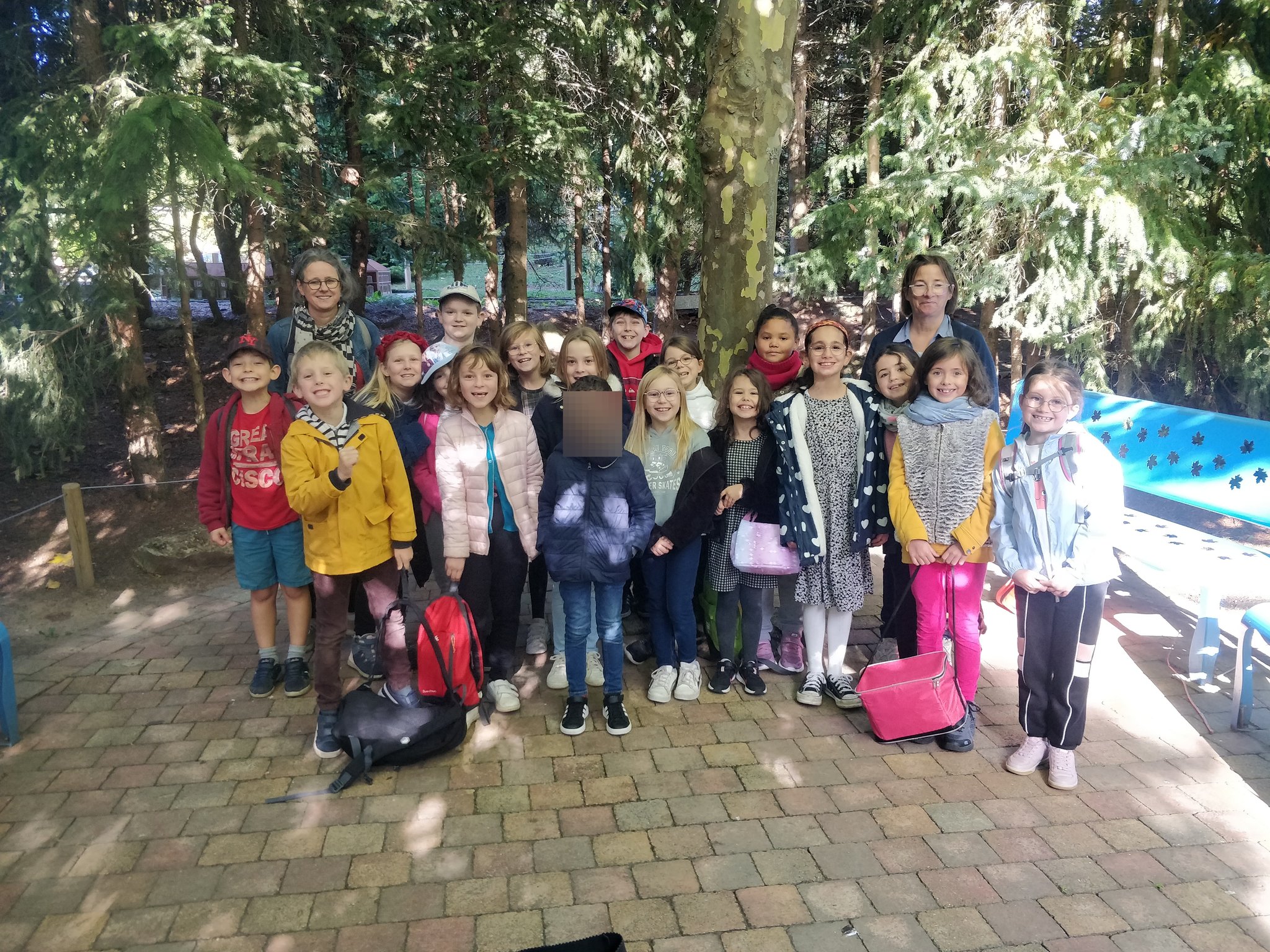 Cette sortie s'est faite en deux partie, la première a permis aux élèves de distinguer entre autre les feuillus des conifères. La seconde partie était consacrée à la reconnaissance des empreintes des divers animaux de la forêt.
